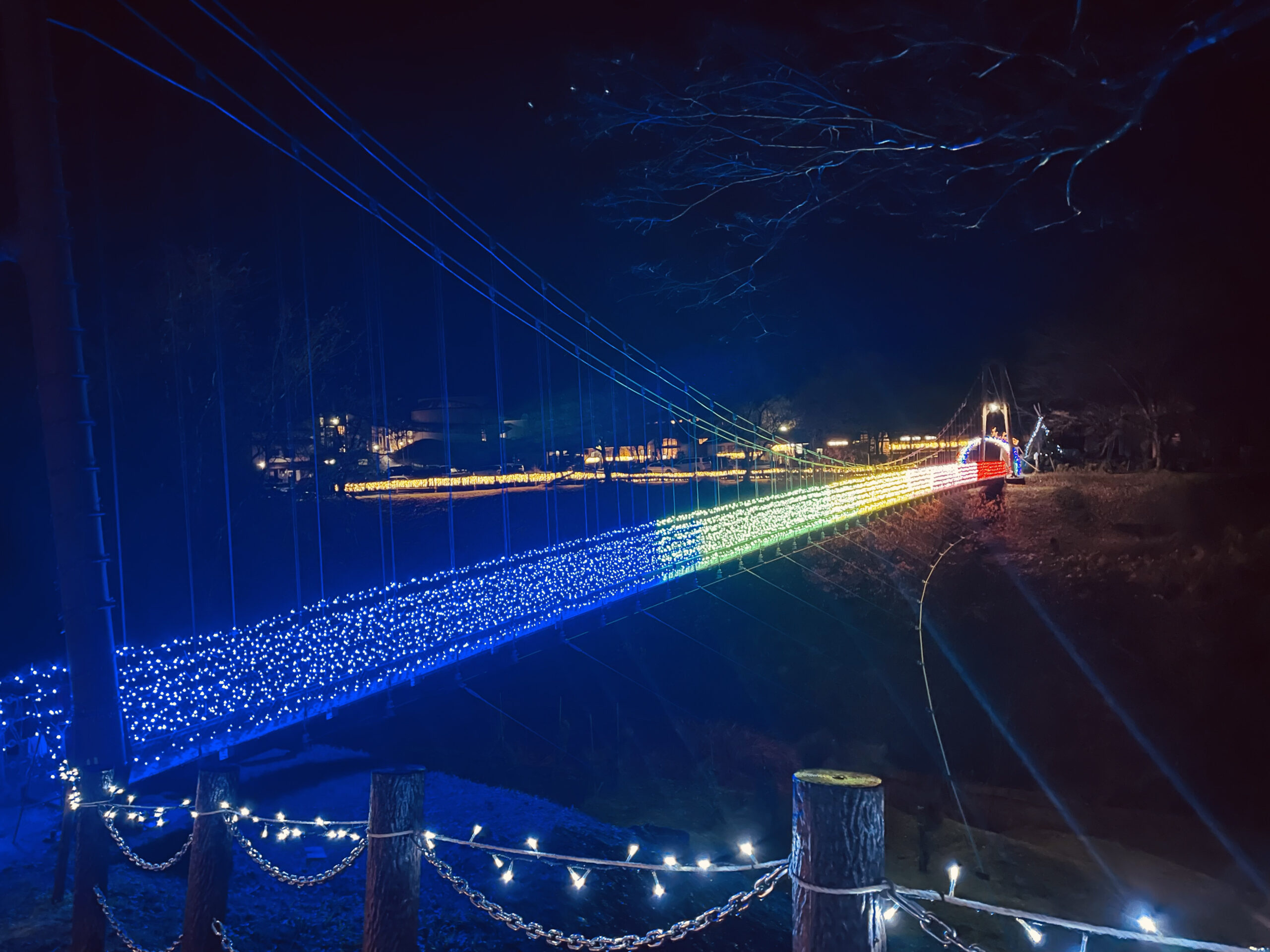 高柳じょんのび村に、クリスマスを盛り上げる、吊り橋イルミネーションが今年も登場します!