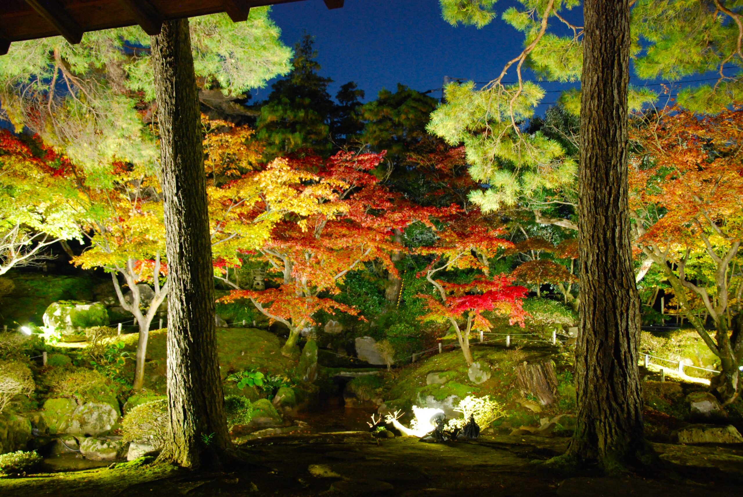 紅葉が美しい庭園の秋幸苑をライトアップします。